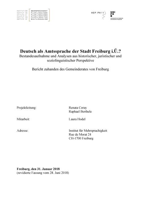 Bericht zuhanden des Gemeinderates von Freiburg, Freiburg, den 31. Januar 2018, (revidierte Fassung vom 28. Juni 2018)